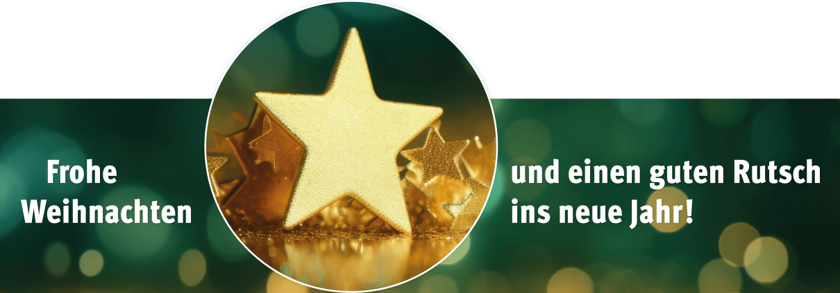 Während die Weihnachtszeit vor allem die Gelegenheit bietet, zur Ruhe zu kommen und Zeit mit Familie und Freunden zu verbringen, richten wir unseren Blick auch nach vorn: Wir freuen uns darauf, 2025 mit neuen Ideen, Engagement und Ihnen an unserer Seite zu gestalten.