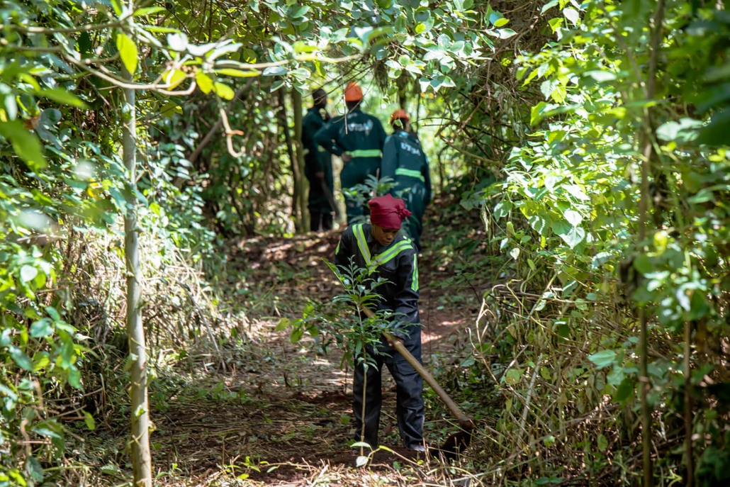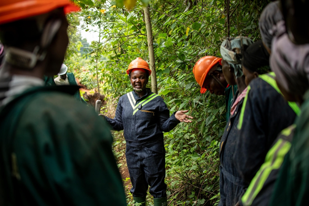 Neben der Arbeit als Pflanzhelfer kümmern sich die Mitglieder der lokalen Communities auch im Zuge von speziellen Waldpatrouillen um den Schutz der wiederhergestellten Flächen. Florence Nadunga , Försterin und Betreuerin des Waldreservats bei Ugandas nationaler Forstbehörde NFA, ist eine von ihnen: “Morgens versammeln wir uns, ausgestattet mit unserer persönlichen Schutzausrüstung, als Patrouillenteam und planen den Tag. Wir arbeiten jeden Tag hart daran, den Wald vor illegalem Holzeinschlag und Wilderei zu schützen.”