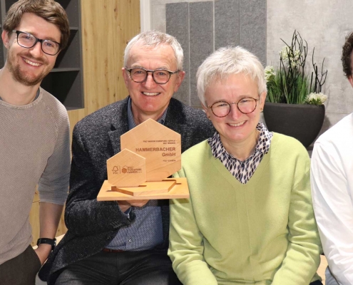 Die Hammerbacher-Produkte werden dabei mit dem FSC®-Mix Label ausgezeichnet. Das Holz stammt also aus FSC-zertifizierten Wäldern, kontrollierten Quellen oder wurde recycelt. „Im Rahmen der Zertifizierung mussten wir innerhalb kürzester Zeit ein innerbetriebliches Managementsystem aufbauen. Die Einhaltung der FSC®-Standards wird seitdem in jährlichen Audits geprüft. Aber der Aufwand lohnt sich und es ist schön zu sehen, dass er mit dem Award nun auch belohnt wurde“, freut sich Bernhard Hammerbacher.