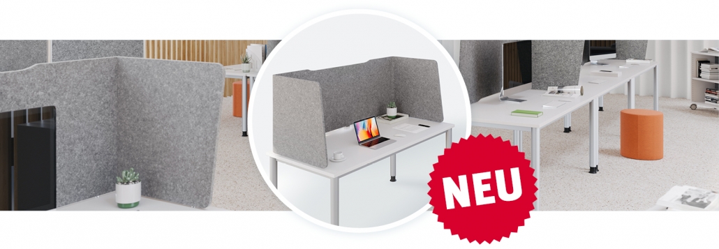 Trennwände aus Akustik-Material können nicht nur ein wirksamer Schutz vor Tröpfcheninfektion sein. Sie ermöglichen auch Privatsphäre am Arbeitsplatz. Denn moderne Büros sind offen und kommunikativ. Tischtrennwände schaffen dabei neue Räume für konzentriertes Arbeiten. Flexibel, vielseitig und platzsparend.